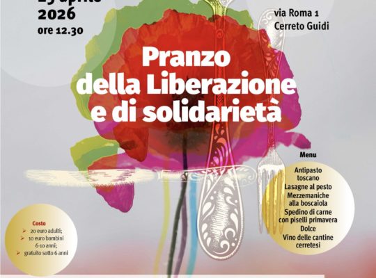 Pranzo della Liberazione e di solidarietà Sabato 25 aprile 2026 – Cerreto Guidi In occasione del 25 aprile, giornata simbolo di libertà, memoria e valori condivisi, si terrà un appuntamento speciale che unisce tradizione e solidarietà: il Pranzo della Liberazione e di solidarietà. Dove: Circolo ARCI Rossetti – Via Roma 1, Cerreto Guidi Quando: Sabato …
