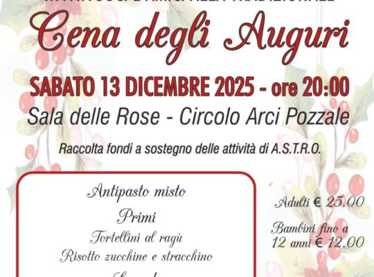 ASTRO invita alla tradizionale Cena degli Auguri: solidarietà, gusto e festa insieme